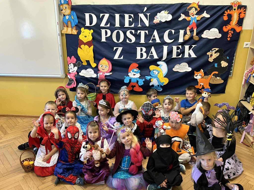 5 listopada w naszym przedszkolu odbył się wyjątkowy i niezwykle kolorowy dzień – Dzień Postaci z Bajek! To jedno z najbardziej lubianych świąt przez nasze przedszkolaki, bo tego dnia każdy mógł stać się swoją ulubioną bajkową postacią.
