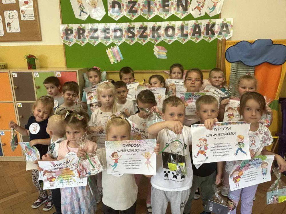 20 września w naszym przedszkolu obchodziliśmy Ogólnopolski Dzień Przedszkolaka - święto pełne radości, uśmiechu i dziecięcej beztroski. To wyjątkowy dzień, który przypomina, jak ważne są dzieci w naszym życiu i jak wiele radości wnosi ich obecność do naszej codzienności. Z tej okazji naszych przedszkolaków czekało mnóstwo atrakcji. Były wspólne zabawy, tańce, konkurencje i wesoła muzyka . Dzieci miały okazję spędzić ten dzień w wyjątkowej atmosferze - pełnej uśmiechu i dobrej zabawy. Dzieci uczestniczyły w różnorodnych zajęciach integracyjnych i plastycznych, a także w grach zespołowych rozwijających kreatywność i współpracę . Na zakończenie, każde dziecko otrzymało drobny upominek, dyplom Super Przedszkolaka a także pamiątkowy medal , który będzie przypominał o tym wyjątkowym dniu.