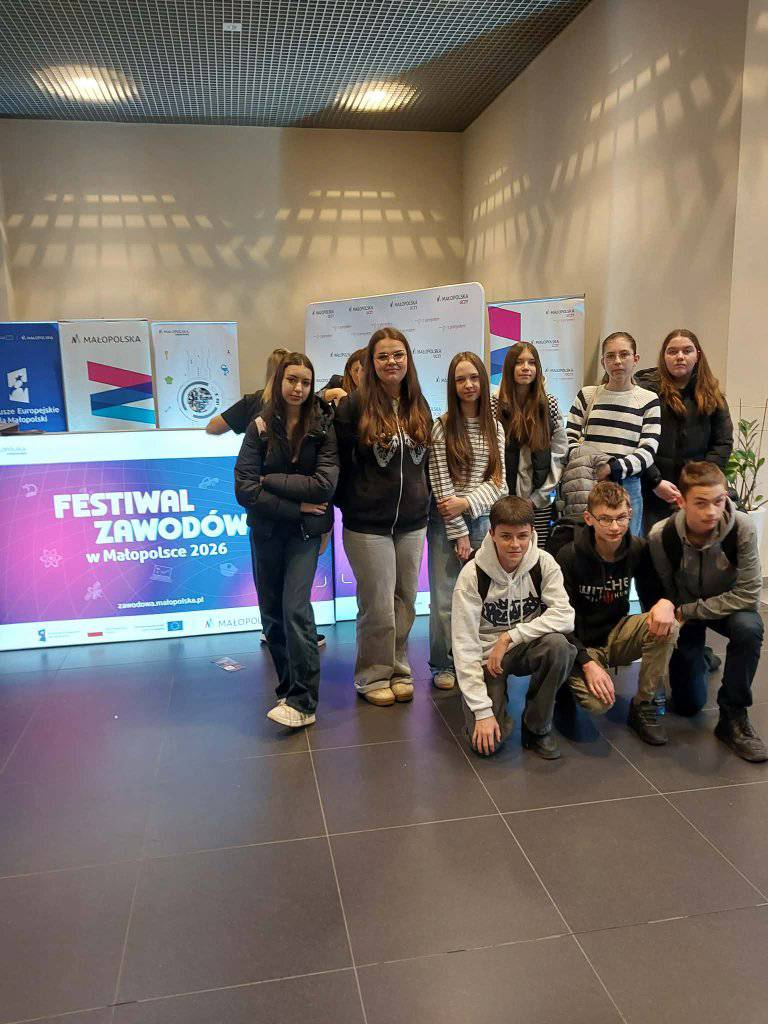 11 marca 2026 r. uczniowie kl. VIII wybrali się do Krakowa na Festiwal Zawodów. Poznali tam ofertę 80 szkół kształcących zawodowo. Dowiedzieli się , jakie możliwości daje nauka w szkołach branżowych i technicznych. Oglądali prezentacje w 7 strefach tematycznych, pokazy na scenie głównej, uczestniczyli w warsztatach praktycznych.