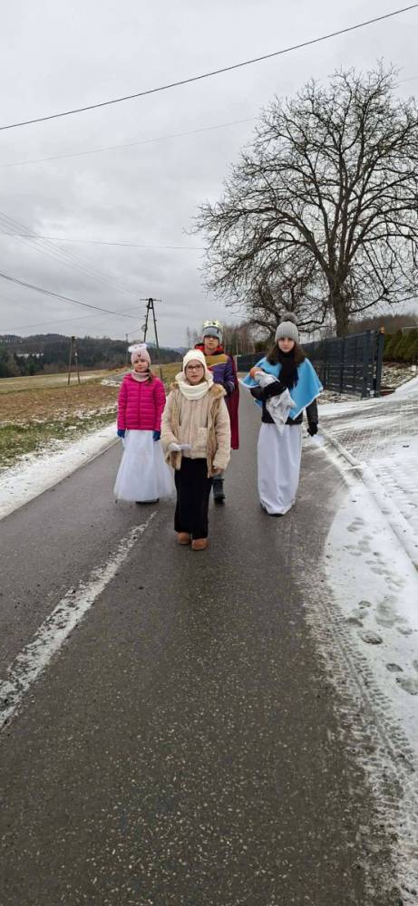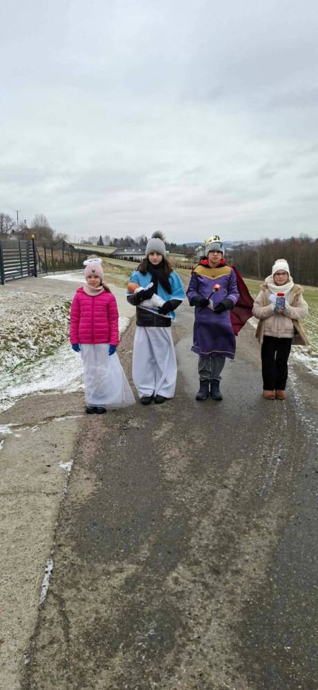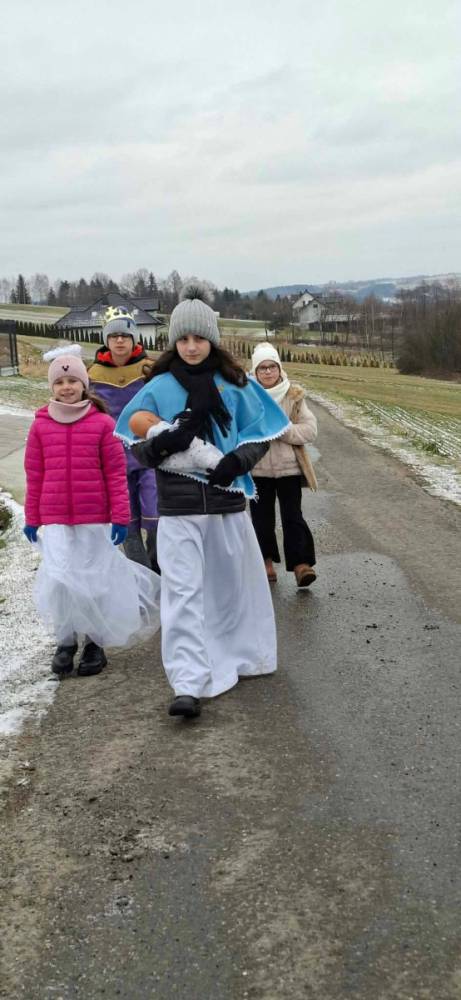 „Jesús, Tú eres la luz” – „Jezu, Ty jesteś światłością” - z takim hasłem wyruszyliśmy na coroczną Kolędę Misyjną. Cztery grupy kolędników przemierzały zakątki Kąśnej Dolnej i Kąśnej Górnej niosąc misyjne przesłanie. Dzięki ofiarności mieszkańców udało nam się wspólnie zebrać 5180 zł i 2 euro. Środki te zostaną przekazane na cele misyjne. Na szczególne wyróżnienie zasługuje tutaj uczennica kl. 7 - Oliwia Hołda, która została w swojej grupie sama, a mimo to wraz z opiekunem podjęła trud kolędowania po swoim wyznaczonym rejonie. Składam serdeczne podziękowania współorganizatorom Kolędy - pp. Katarzynie Łazowskiej i Mateuszowi Schabowskiemu oraz wszystkim Rodzicom, którzy pomogli swoim dzieciom przygotować stroje i dopingowali w czynieniu dobra dla innych