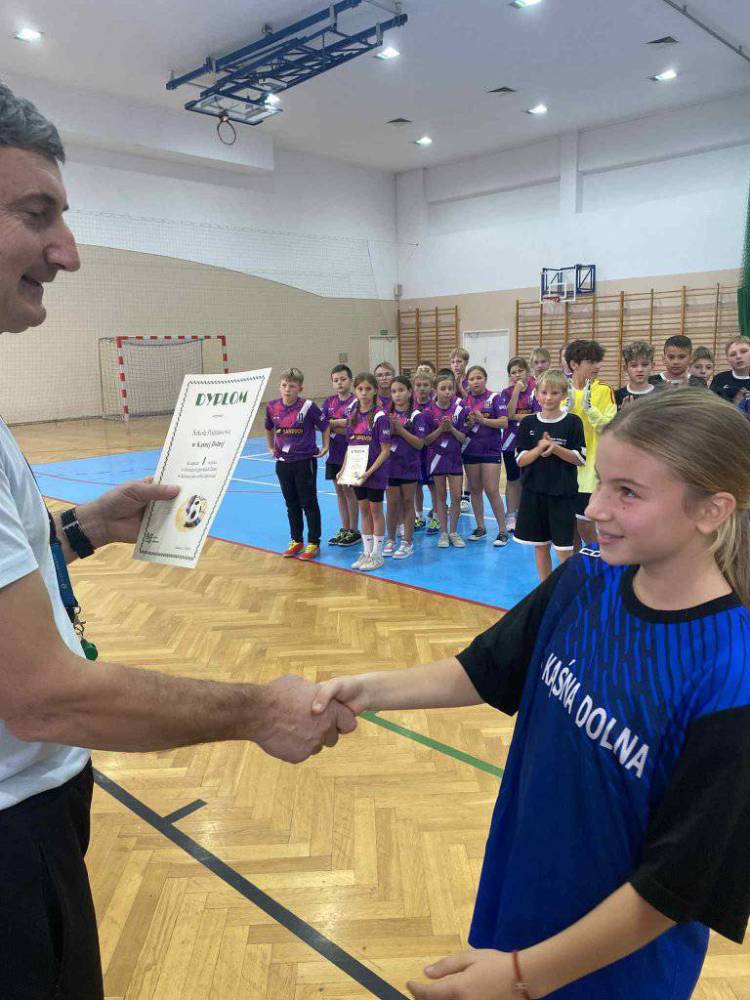 Z radością informujemy, że drużyna dziewcząt z klas 5 i 6 naszej szkoły odniosła zwycięstwo w Gminnych Igrzyskach Dzieci w piłce nożnej halowej dziewcząt. Nasze zawodniczki wykazały się ogromnym zaangażowaniem, wolą walki i świetną współpracą na boisku. Gratulujemy całej drużynie tego wspaniałego sukcesu i życzymy kolejnych sportowych osiągnięć!
