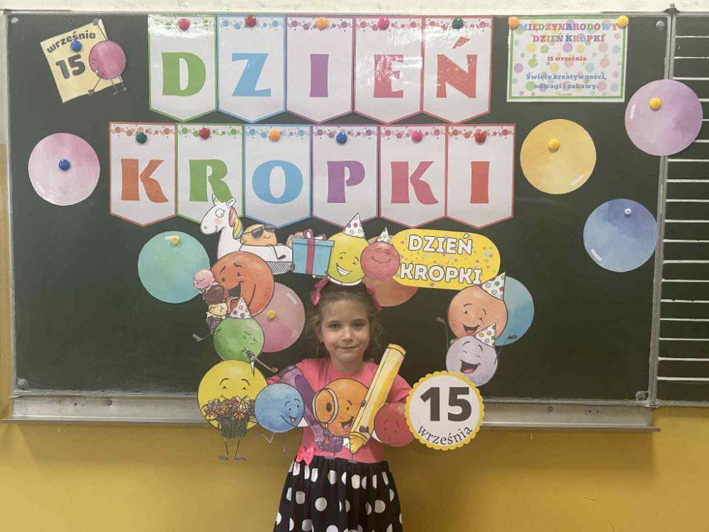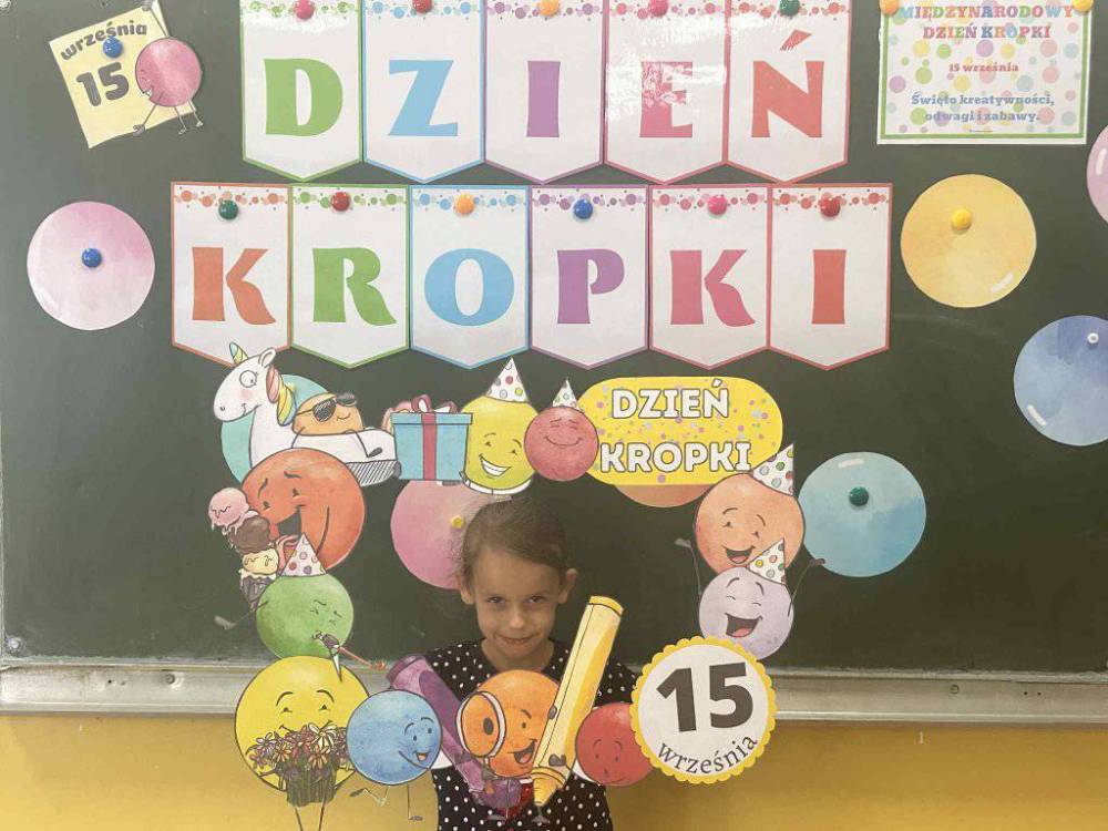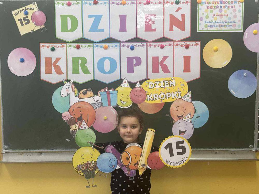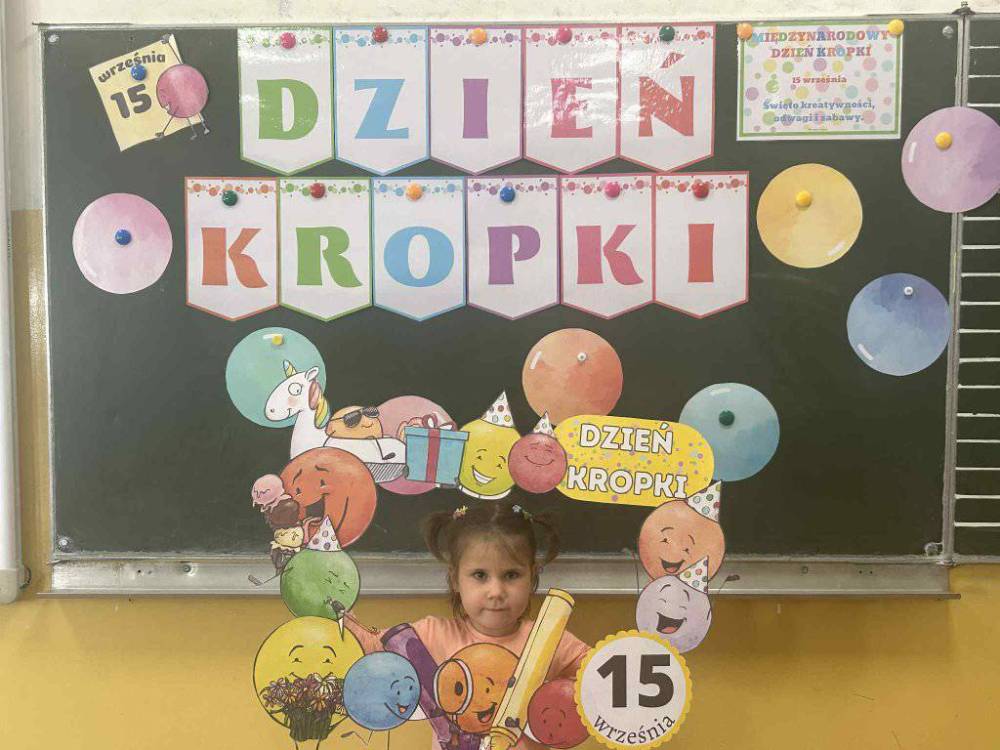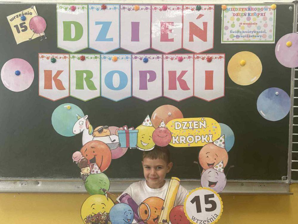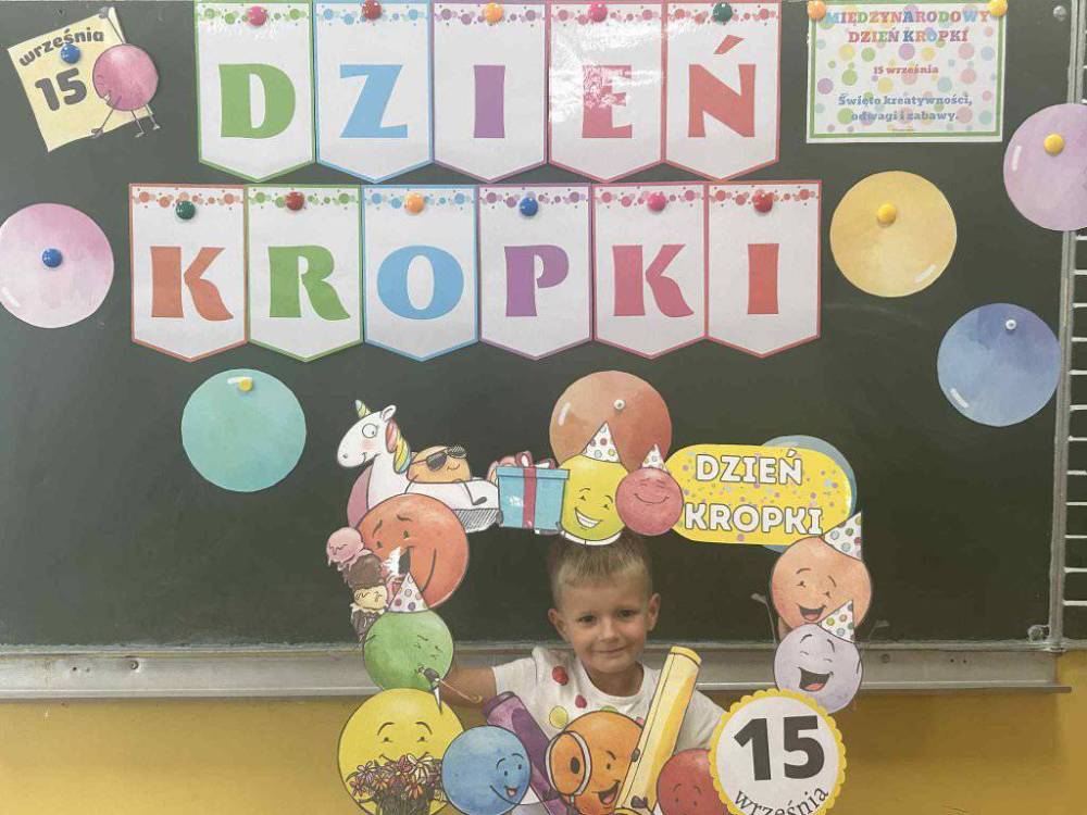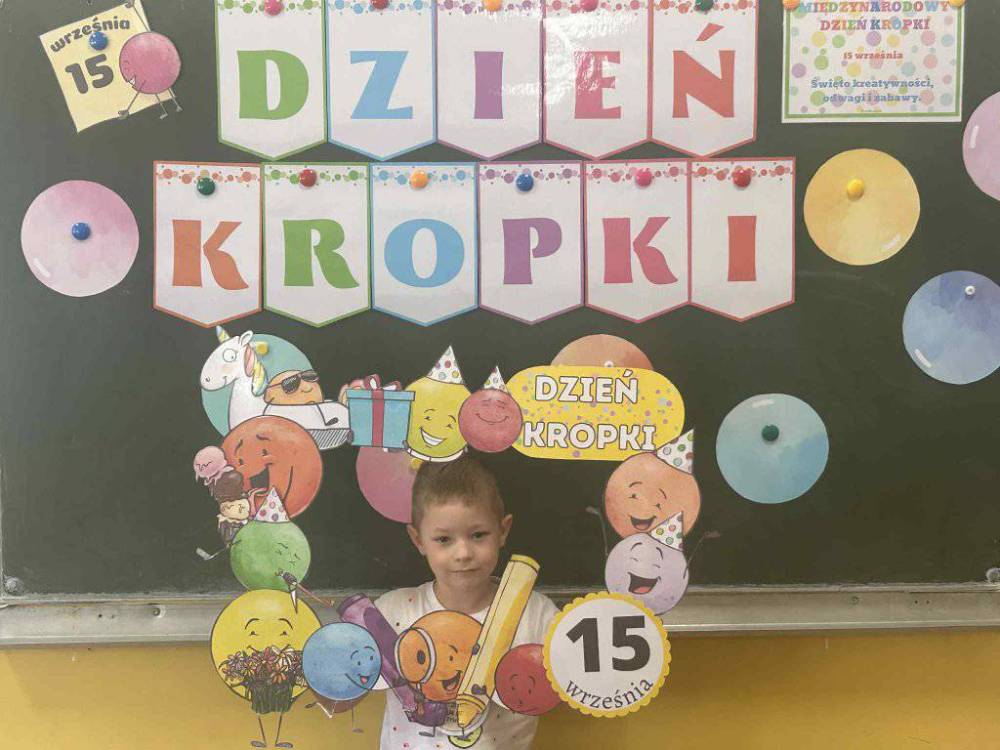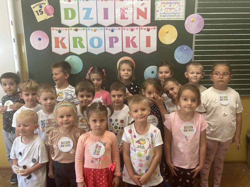 15 września w naszym przedszkolu obchodziliśmy Międzynarodowy Dzień Kropki- święto kreatywności, odwagi i wiary w swoje możliwości. Dzień ten inspirowany jest książką Petera H. Reynoldsa pt: „The Dot”, która opowiada historię dziewczynki o imieniu Vashti, odkrywając swój artystyczny talent dzięki zwykłej kropce. Dzieci z wielkim entuzjazmem włączyły się w różnorodne aktywności plastyczne, ruchowe i muzyczne, których motywem przewodnim była oczywiście kropka. Święto to było doskonałą okazją do rozmów o tym, że każdy z nas ma w sobie potencjał i warto wierzyć w swoje możliwości. Dzień Kropki w naszym przedszkolu był pełen radości, uśmiechu i pozytywnej energii.