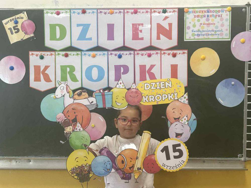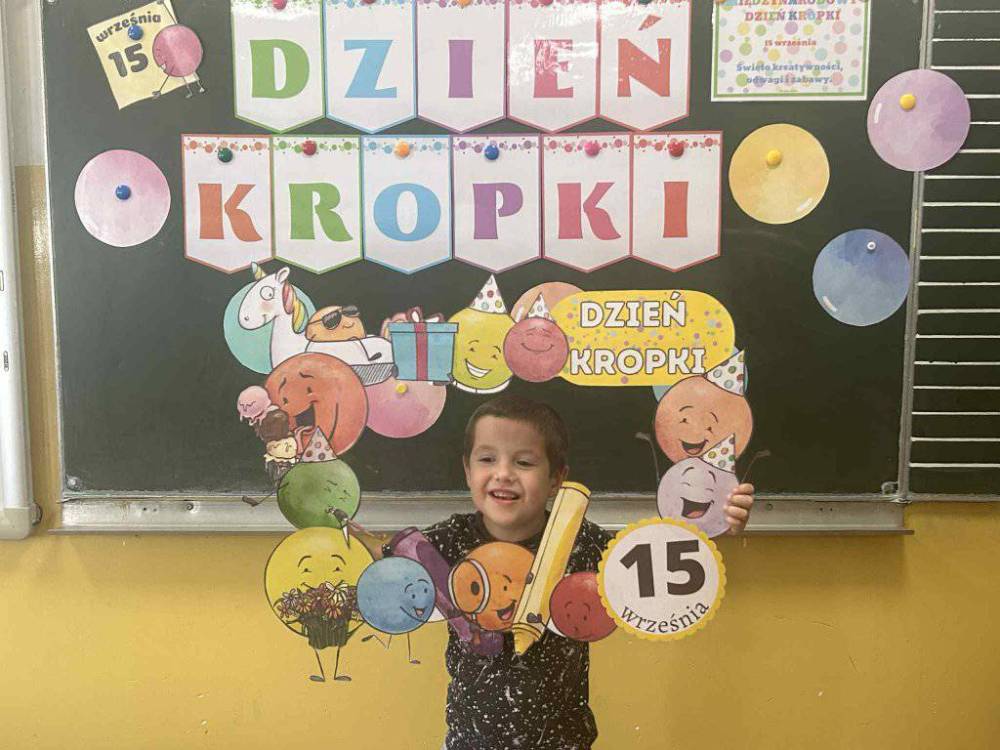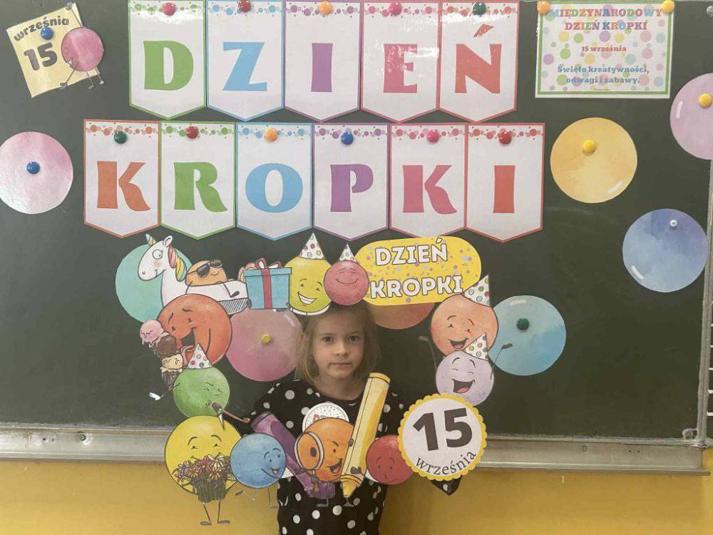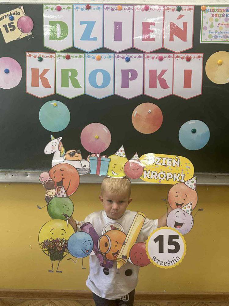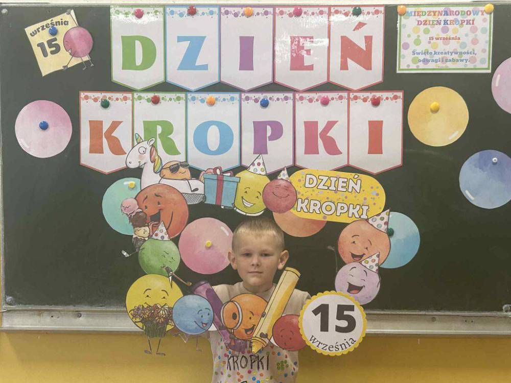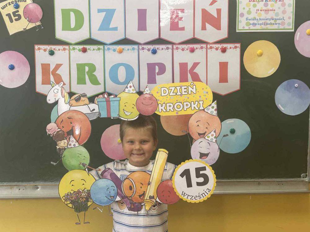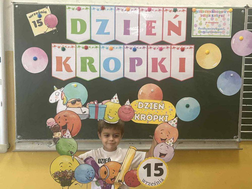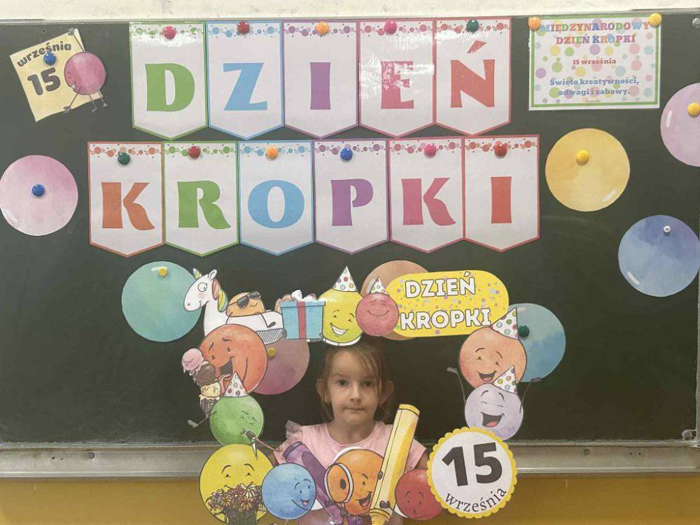 15 września w naszym przedszkolu obchodziliśmy Międzynarodowy Dzień Kropki- święto kreatywności, odwagi i wiary w swoje możliwości. Dzień ten inspirowany jest książką Petera H. Reynoldsa pt: „The Dot”, która opowiada historię dziewczynki o imieniu Vashti, odkrywając swój artystyczny talent dzięki zwykłej kropce. Dzieci z wielkim entuzjazmem włączyły się w różnorodne aktywności plastyczne, ruchowe i muzyczne, których motywem przewodnim była oczywiście kropka. Święto to było doskonałą okazją do rozmów o tym, że każdy z nas ma w sobie potencjał i warto wierzyć w swoje możliwości. Dzień Kropki w naszym przedszkolu był pełen radości, uśmiechu i pozytywnej energii.