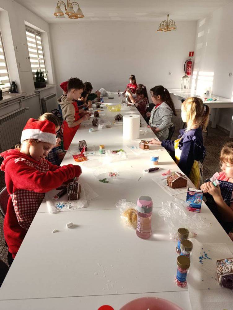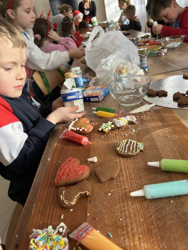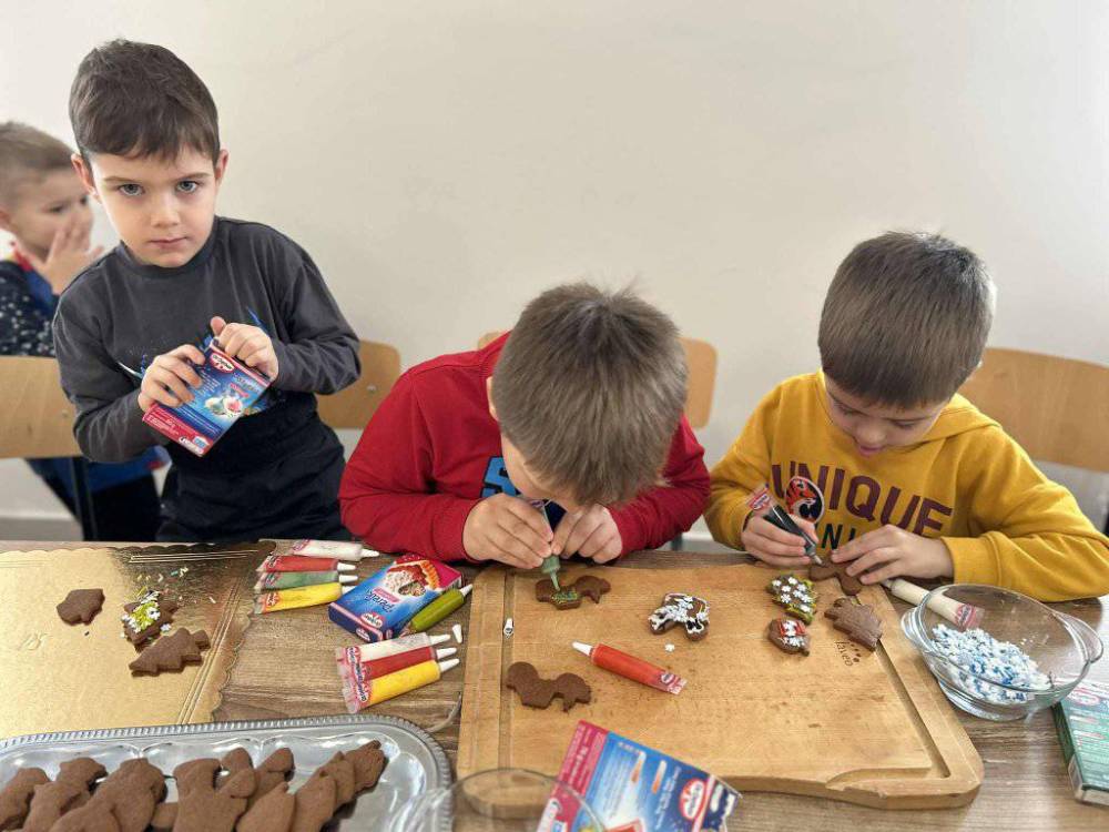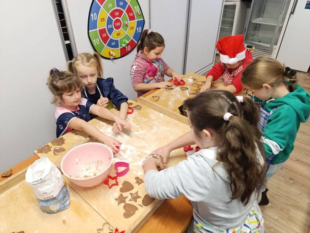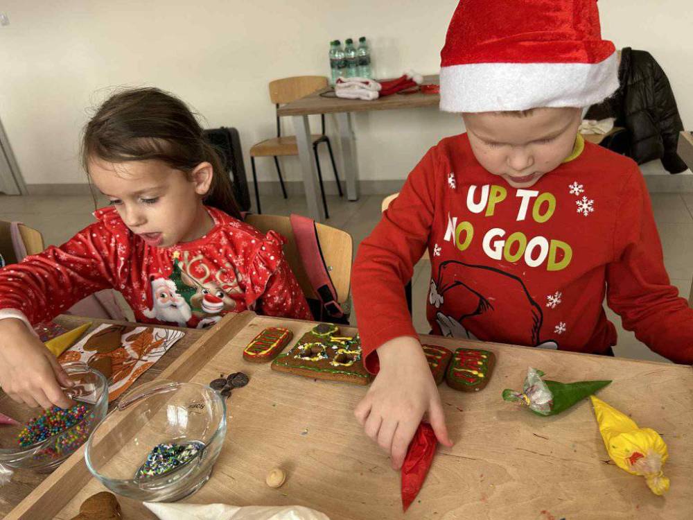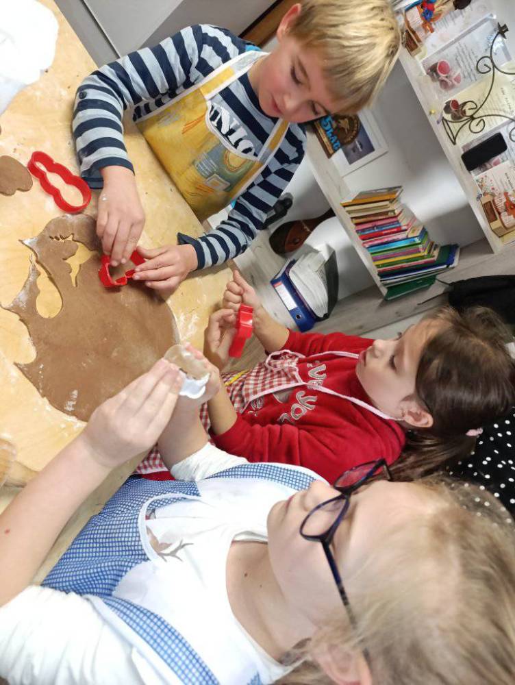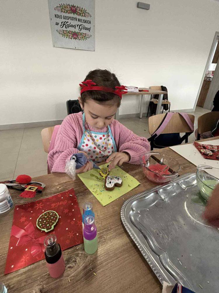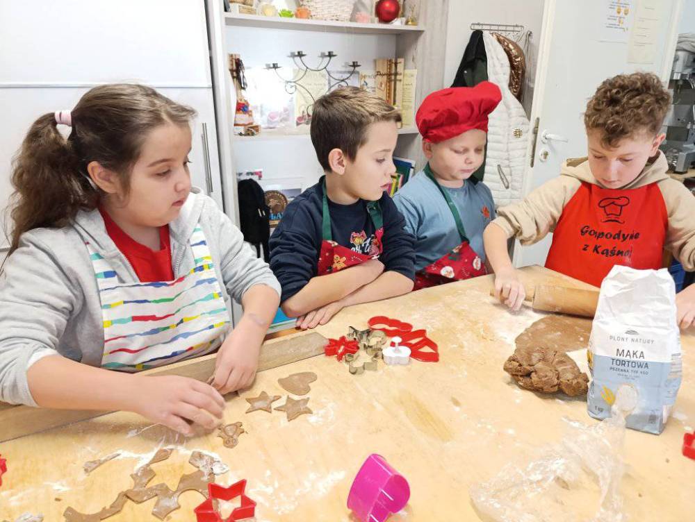 Podczas wizyty dzieci, przy współpracy Rodziców oraz Pań z Kół Gospodyń Wiejskich z Kąśnej Dolnej i Kąśnej Górnej, aktywnie uczestniczyły w przygotowywaniu świątecznych wypieków. Z dużym zaangażowaniem piekły i ozdabiały pierniczki, dekorowały domki z piernika, a także piekły drożdżowe choinki. Zajęcia sprawiły dzieciom wiele radości, rozwijały ich zdolności manualne oraz kreatywność, a także pozwoliły poznać tradycyjne receptury i zwyczaje.