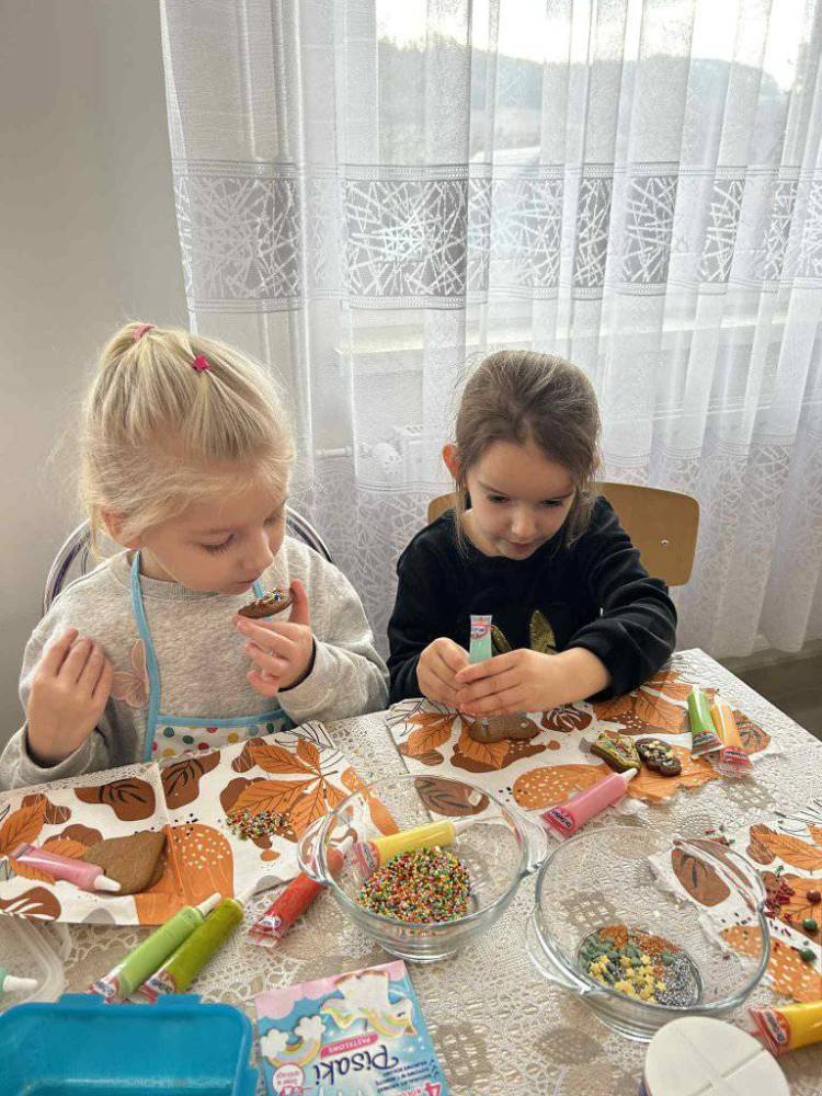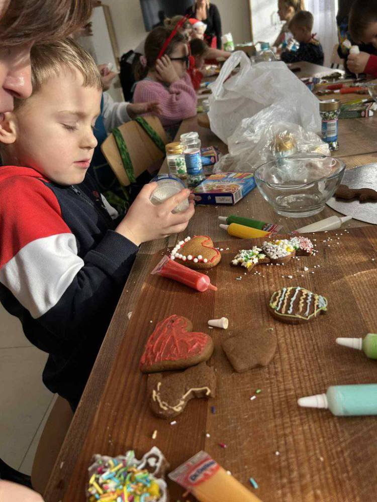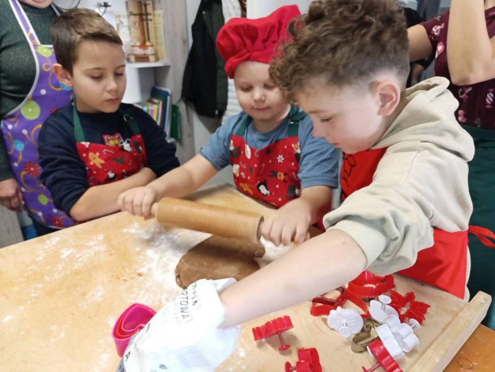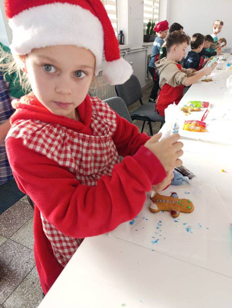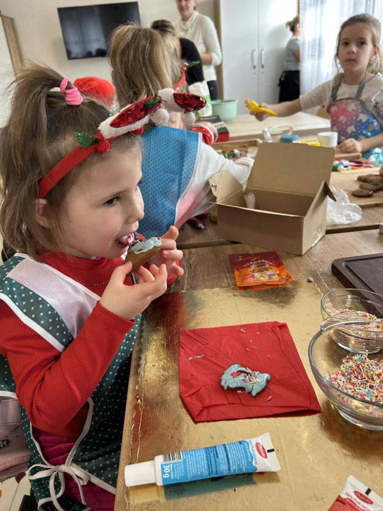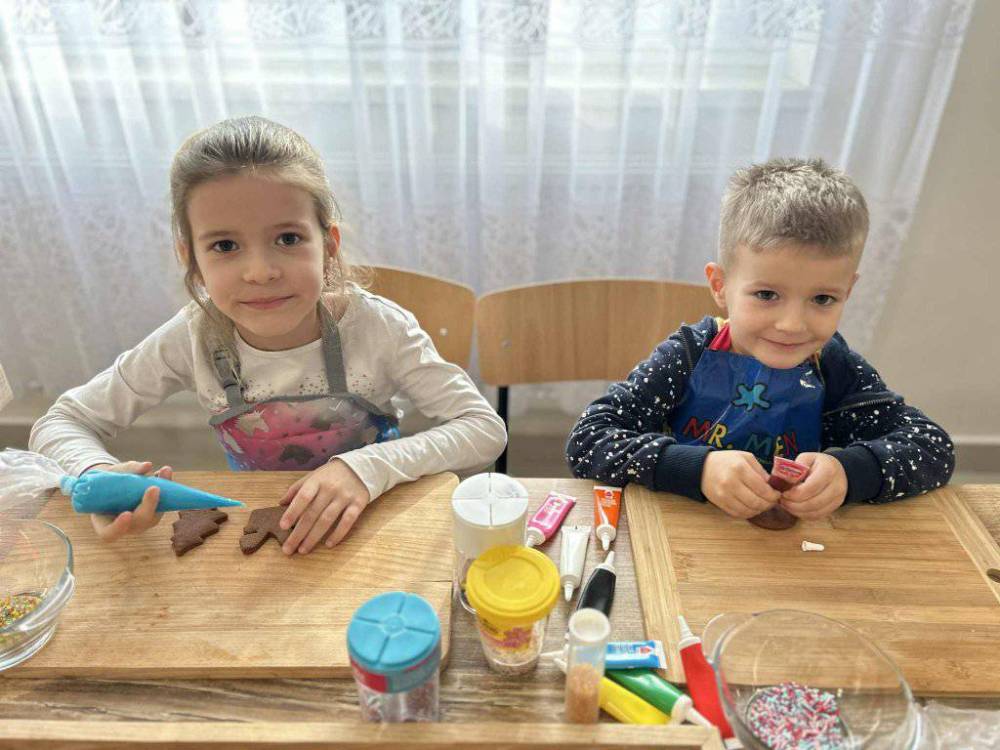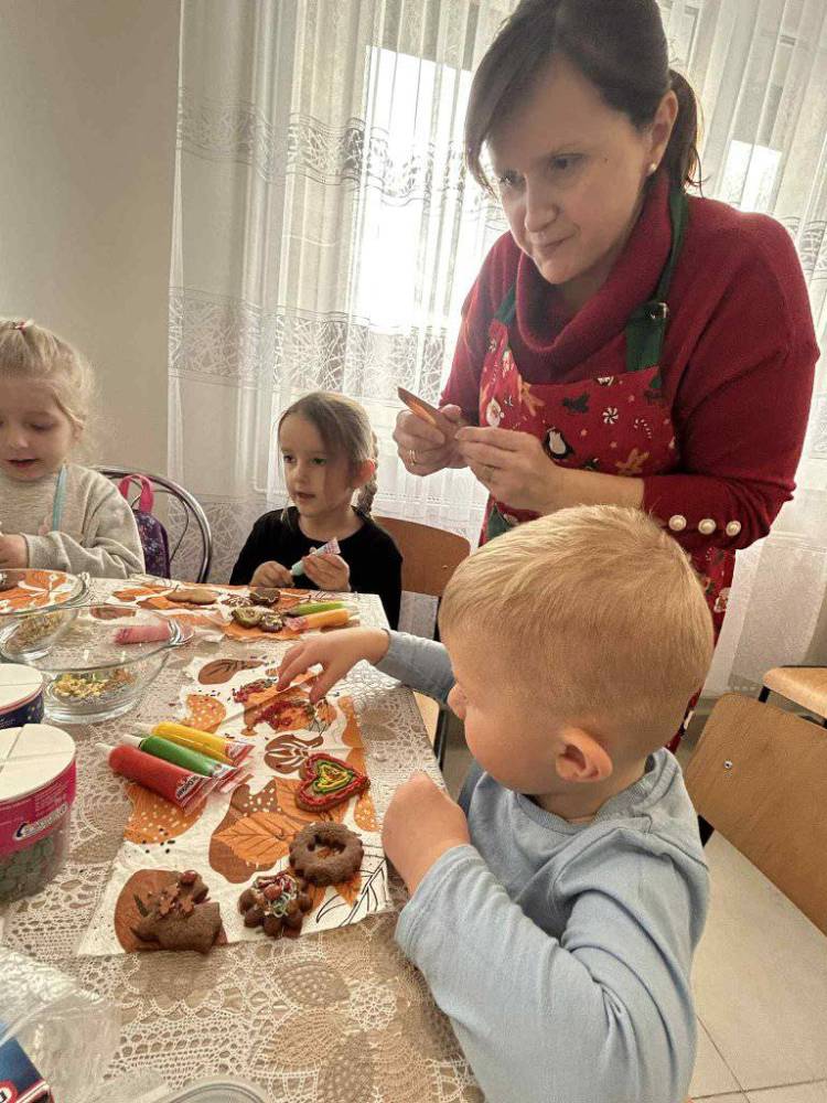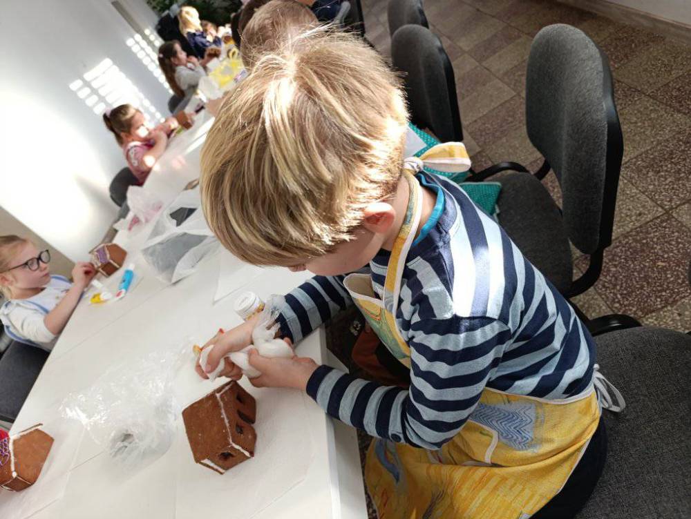 Podczas wizyty dzieci, przy współpracy Rodziców oraz Pań z Kół Gospodyń Wiejskich z Kąśnej Dolnej i Kąśnej Górnej, aktywnie uczestniczyły w przygotowywaniu świątecznych wypieków. Z dużym zaangażowaniem piekły i ozdabiały pierniczki, dekorowały domki z piernika, a także piekły drożdżowe choinki. Zajęcia sprawiły dzieciom wiele radości, rozwijały ich zdolności manualne oraz kreatywność, a także pozwoliły poznać tradycyjne receptury i zwyczaje.