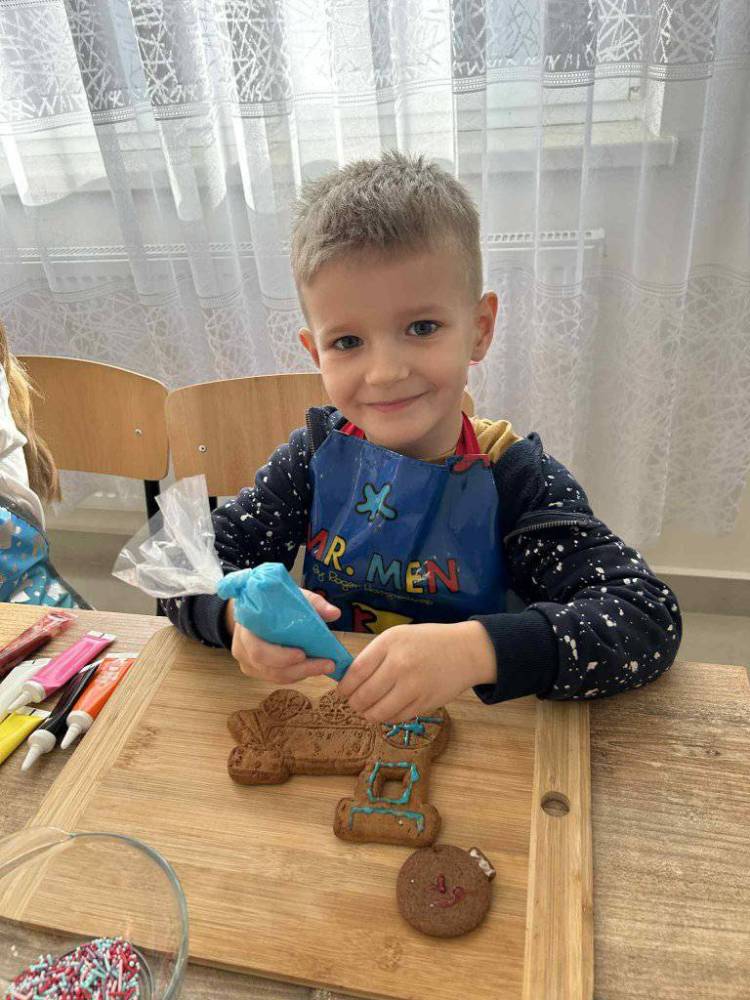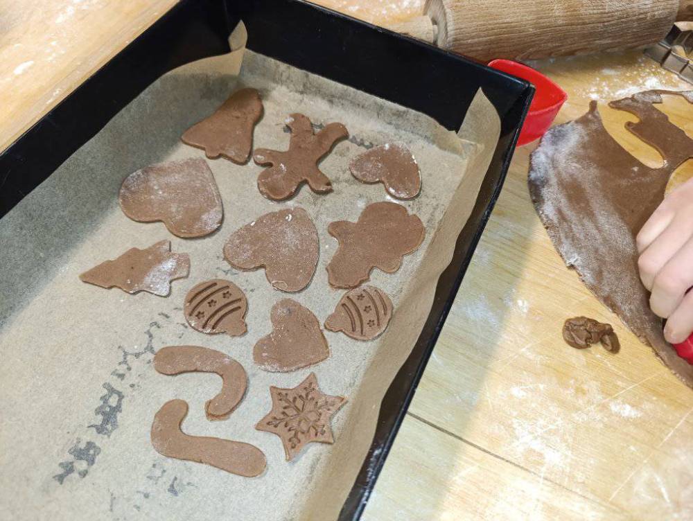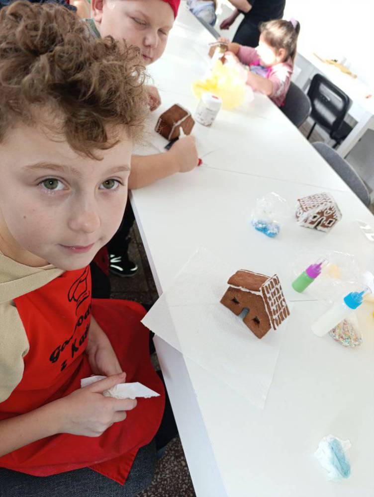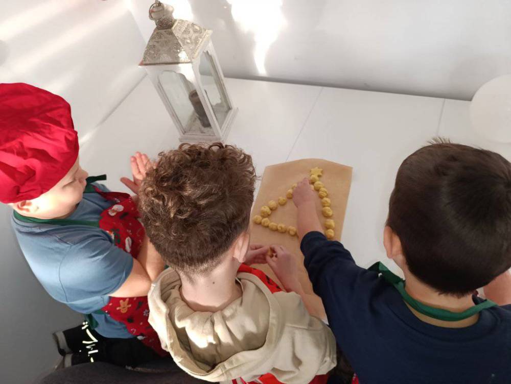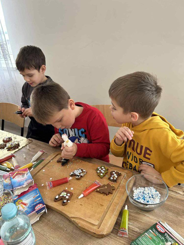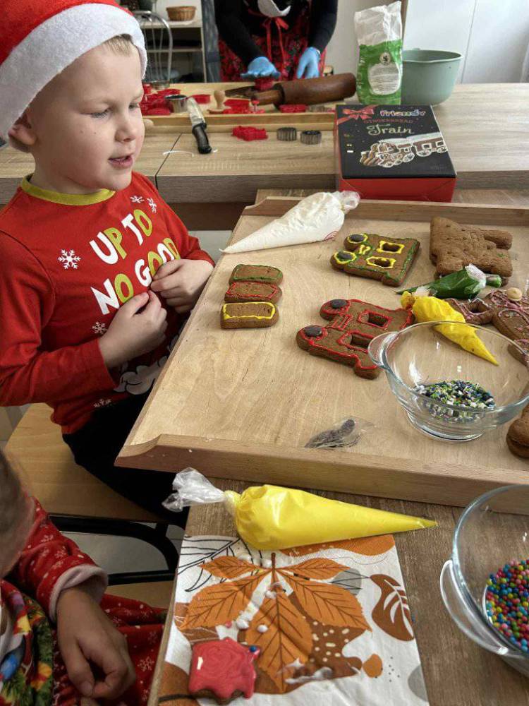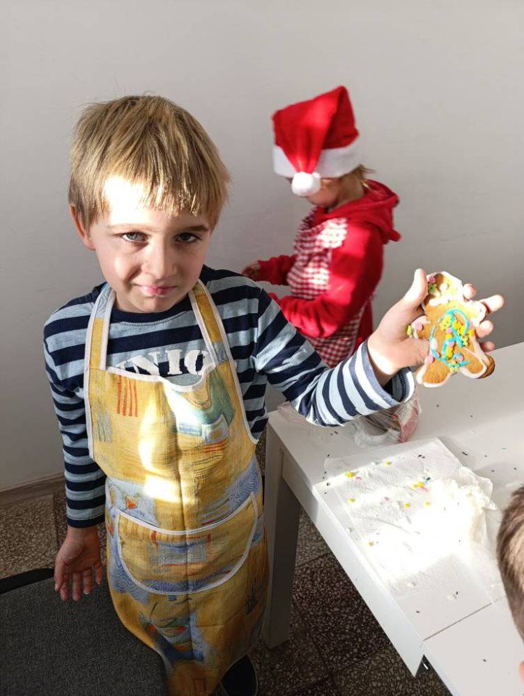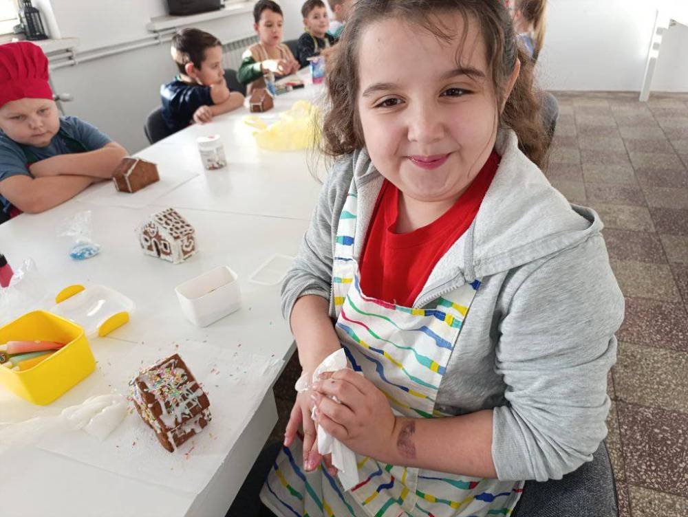 Podczas wizyty dzieci, przy współpracy Rodziców oraz Pań z Kół Gospodyń Wiejskich z Kąśnej Dolnej i Kąśnej Górnej, aktywnie uczestniczyły w przygotowywaniu świątecznych wypieków. Z dużym zaangażowaniem piekły i ozdabiały pierniczki, dekorowały domki z piernika, a także piekły drożdżowe choinki. Zajęcia sprawiły dzieciom wiele radości, rozwijały ich zdolności manualne oraz kreatywność, a także pozwoliły poznać tradycyjne receptury i zwyczaje.