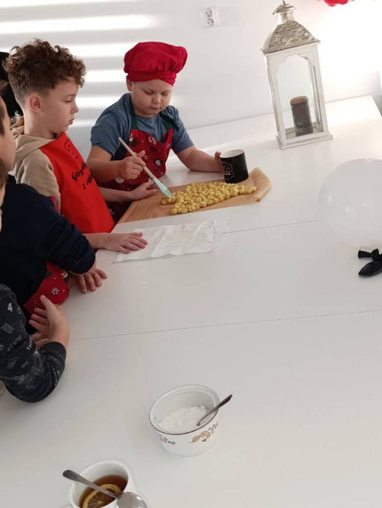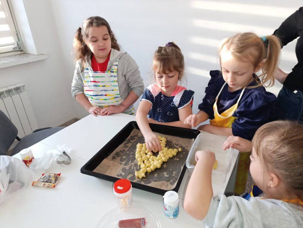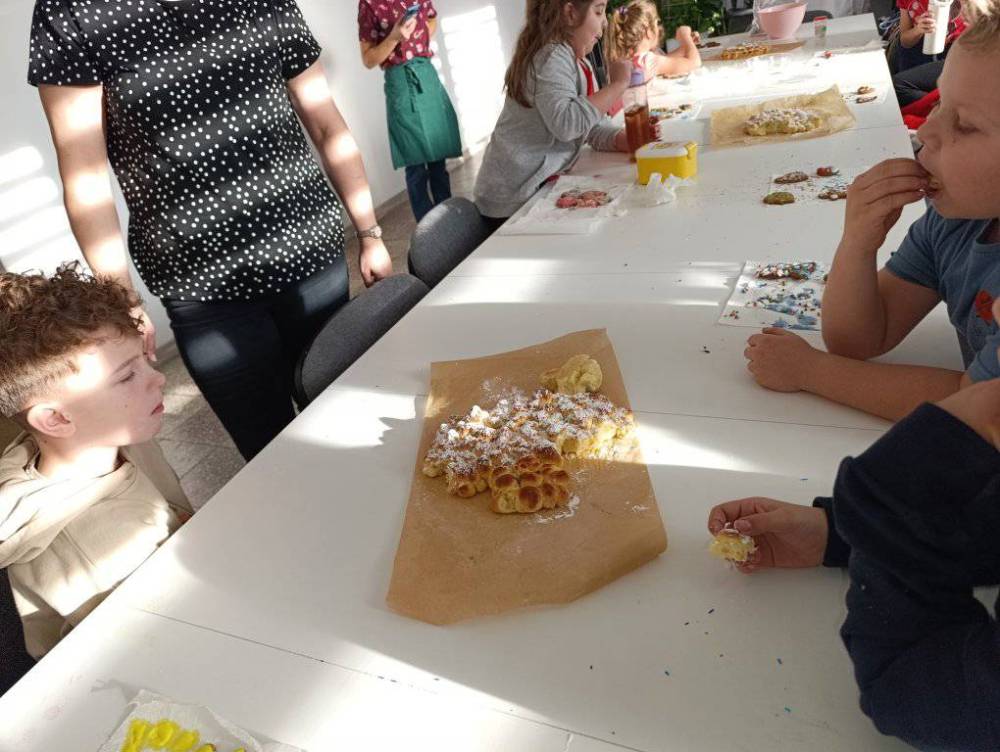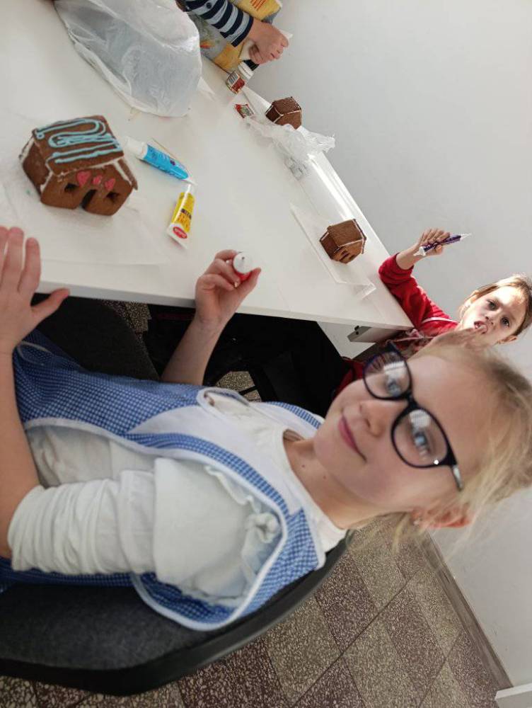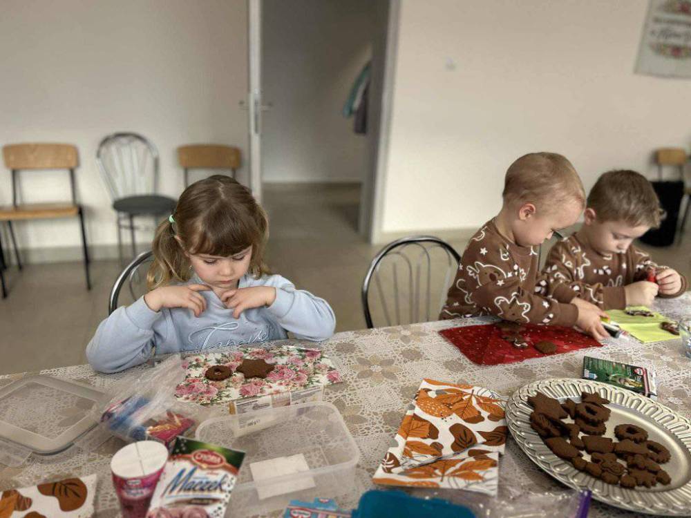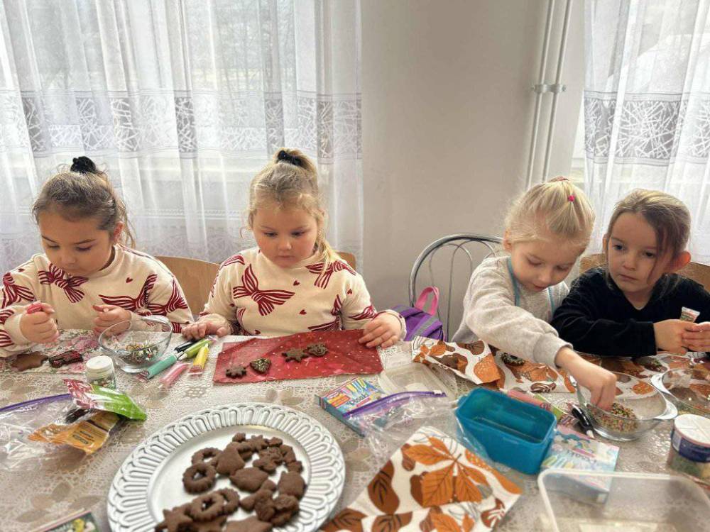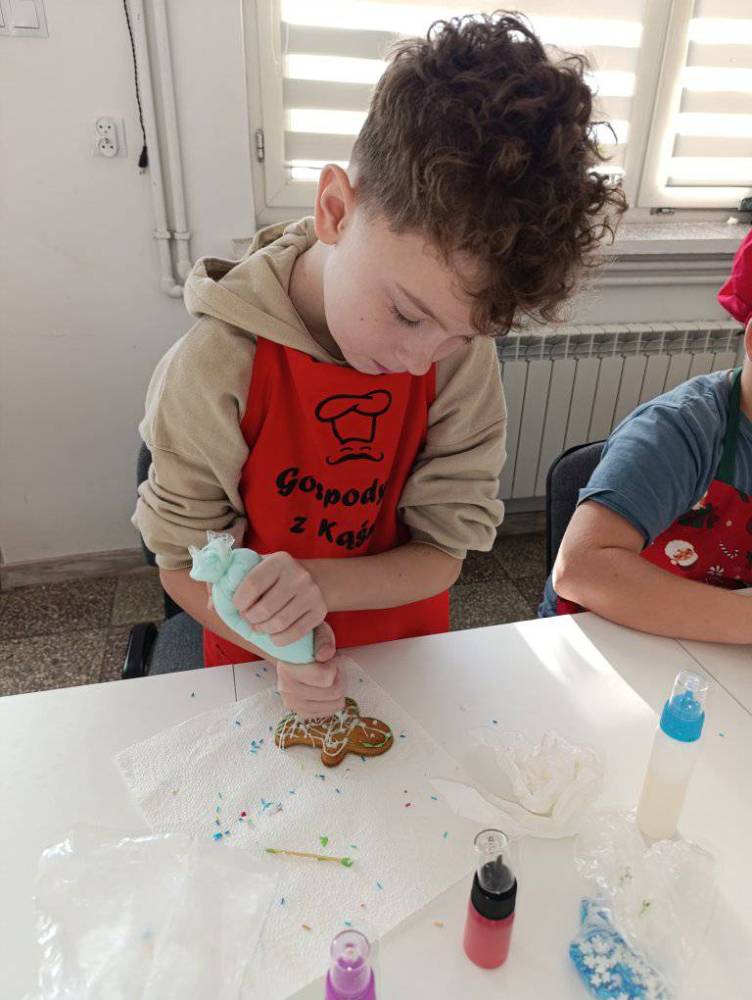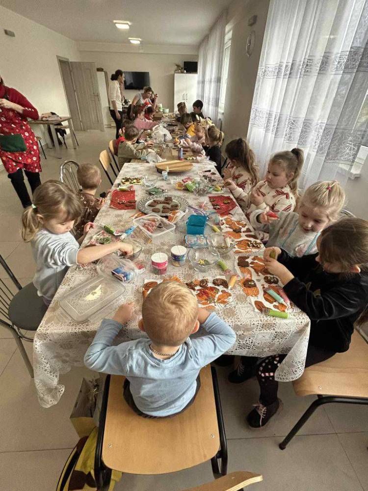 Podczas wizyty dzieci, przy współpracy Rodziców oraz Pań z Kół Gospodyń Wiejskich z Kąśnej Dolnej i Kąśnej Górnej, aktywnie uczestniczyły w przygotowywaniu świątecznych wypieków. Z dużym zaangażowaniem piekły i ozdabiały pierniczki, dekorowały domki z piernika, a także piekły drożdżowe choinki. Zajęcia sprawiły dzieciom wiele radości, rozwijały ich zdolności manualne oraz kreatywność, a także pozwoliły poznać tradycyjne receptury i zwyczaje.