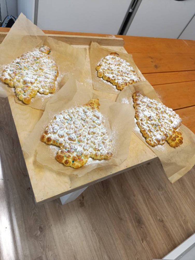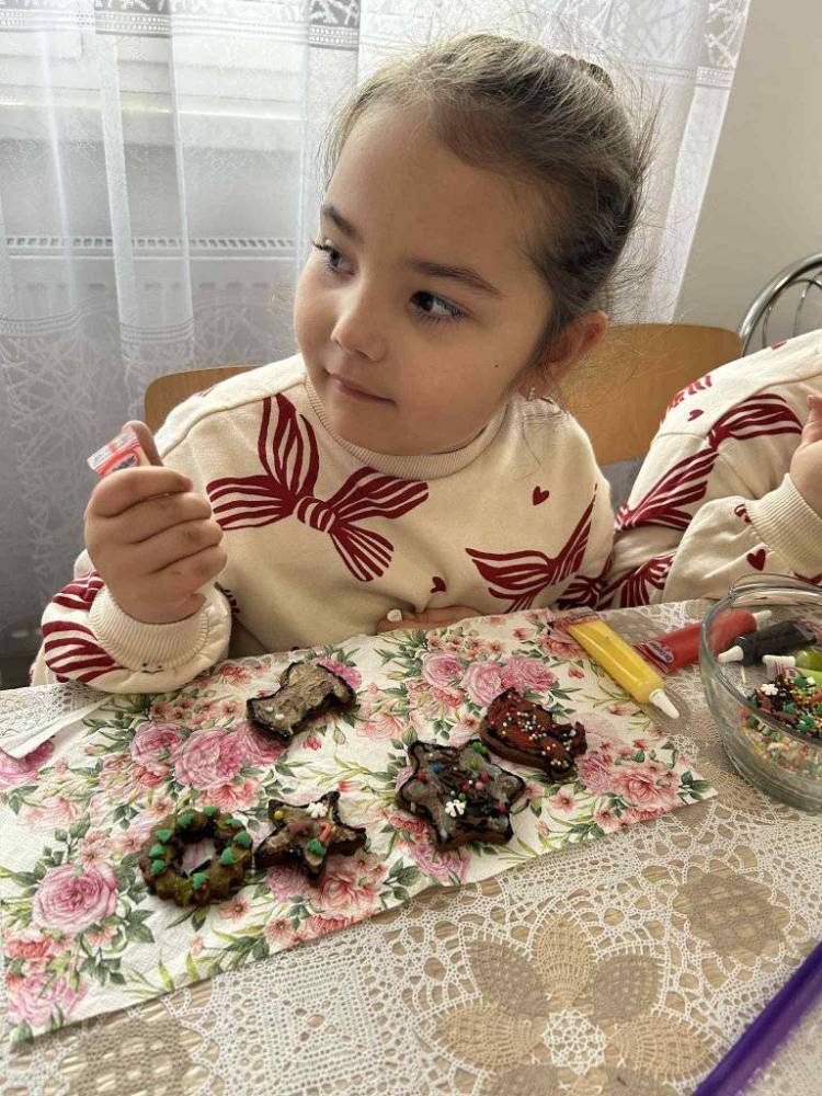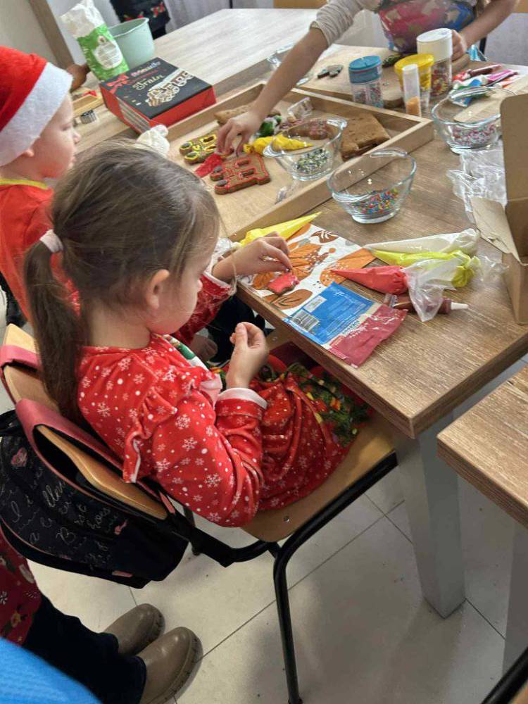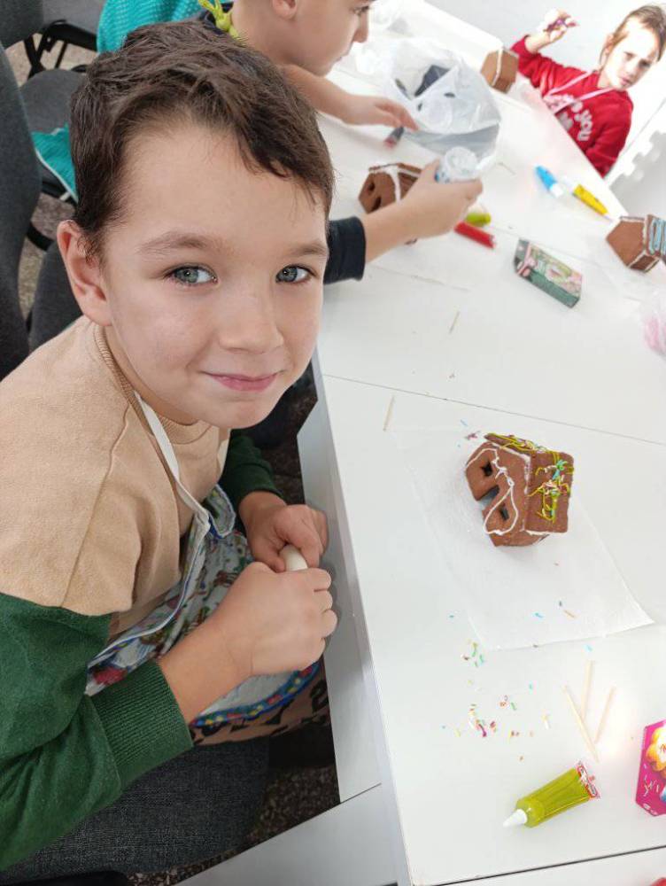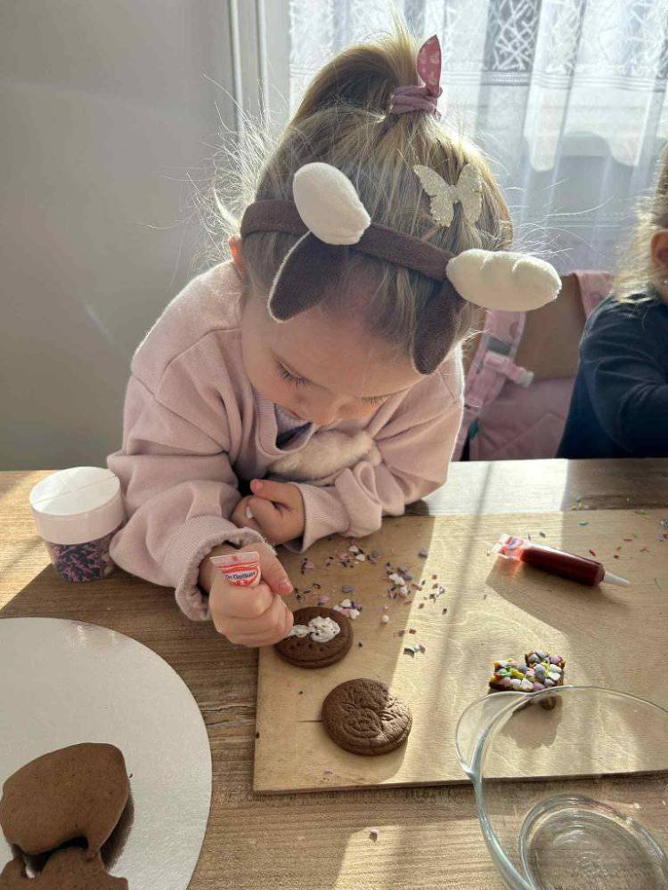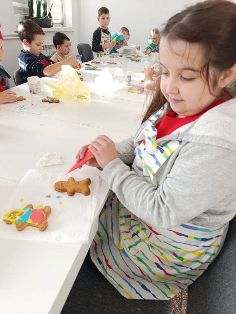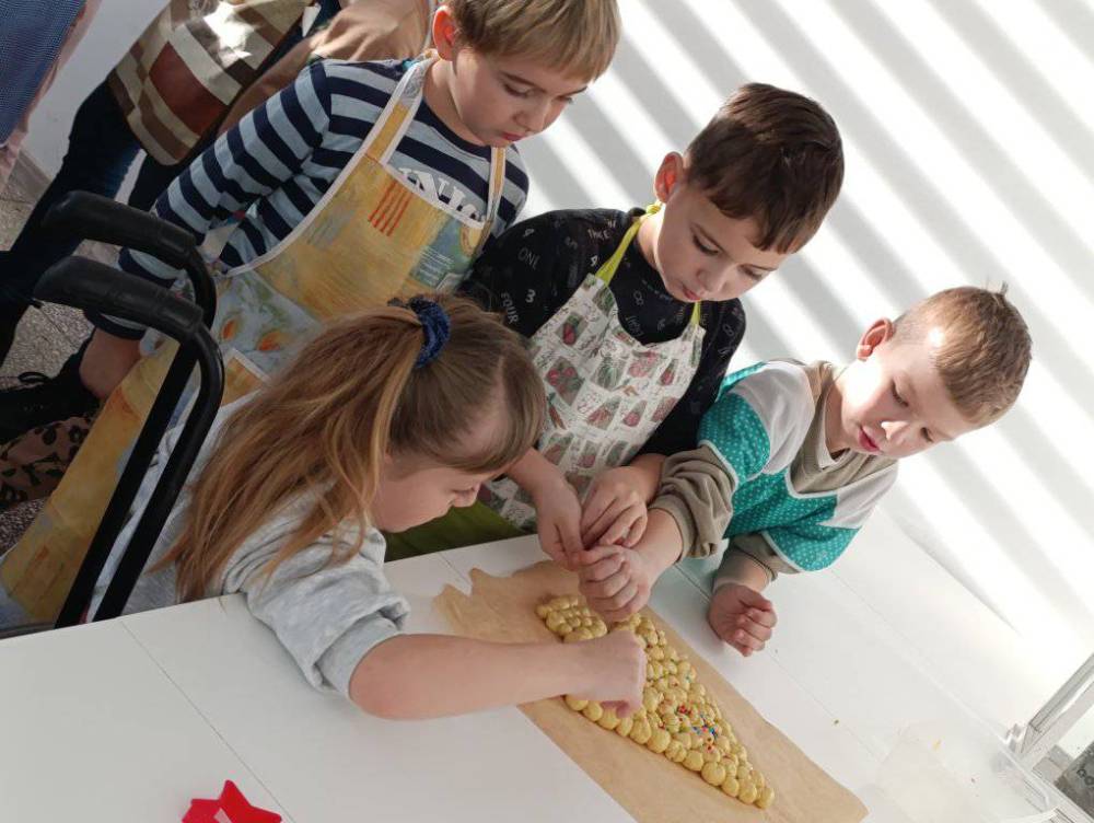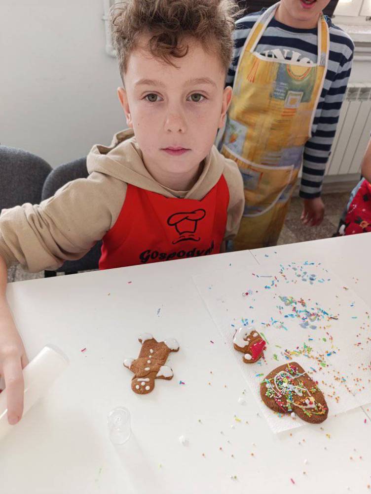 Podczas wizyty dzieci, przy współpracy Rodziców oraz Pań z Kół Gospodyń Wiejskich z Kąśnej Dolnej i Kąśnej Górnej, aktywnie uczestniczyły w przygotowywaniu świątecznych wypieków. Z dużym zaangażowaniem piekły i ozdabiały pierniczki, dekorowały domki z piernika, a także piekły drożdżowe choinki. Zajęcia sprawiły dzieciom wiele radości, rozwijały ich zdolności manualne oraz kreatywność, a także pozwoliły poznać tradycyjne receptury i zwyczaje.