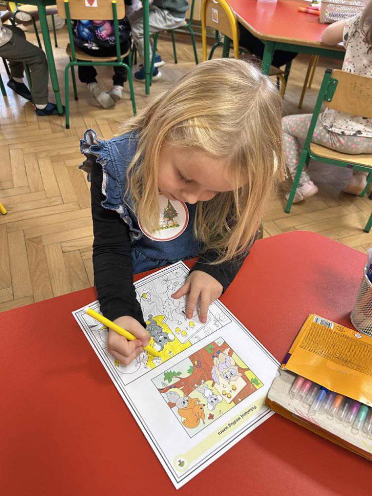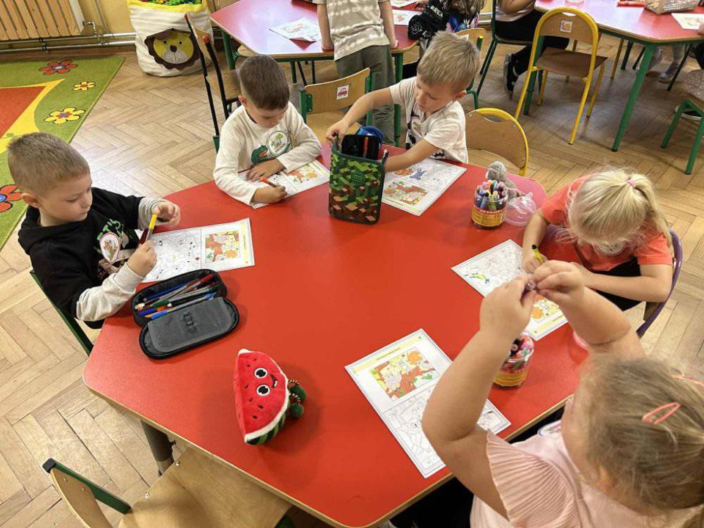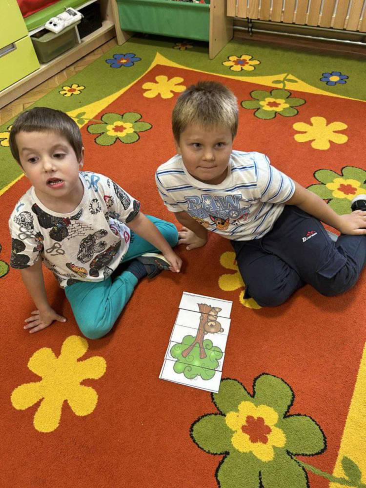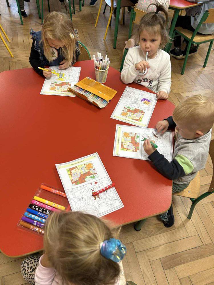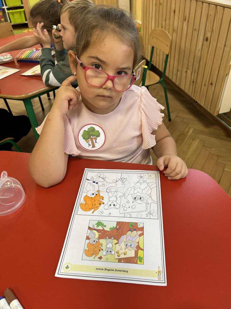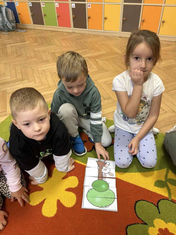 Przedszkolaki z zainteresowaniem słuchały opowieści o tym, jak rosną drzewa, dlaczego dają nam tlen i cień, a także jak możemy o nie dbać. Podczas zajęć dzieci rozpoznawały liście i owoce drzew, układały leśne puzzle oraz wykonywały prace plastyczne.