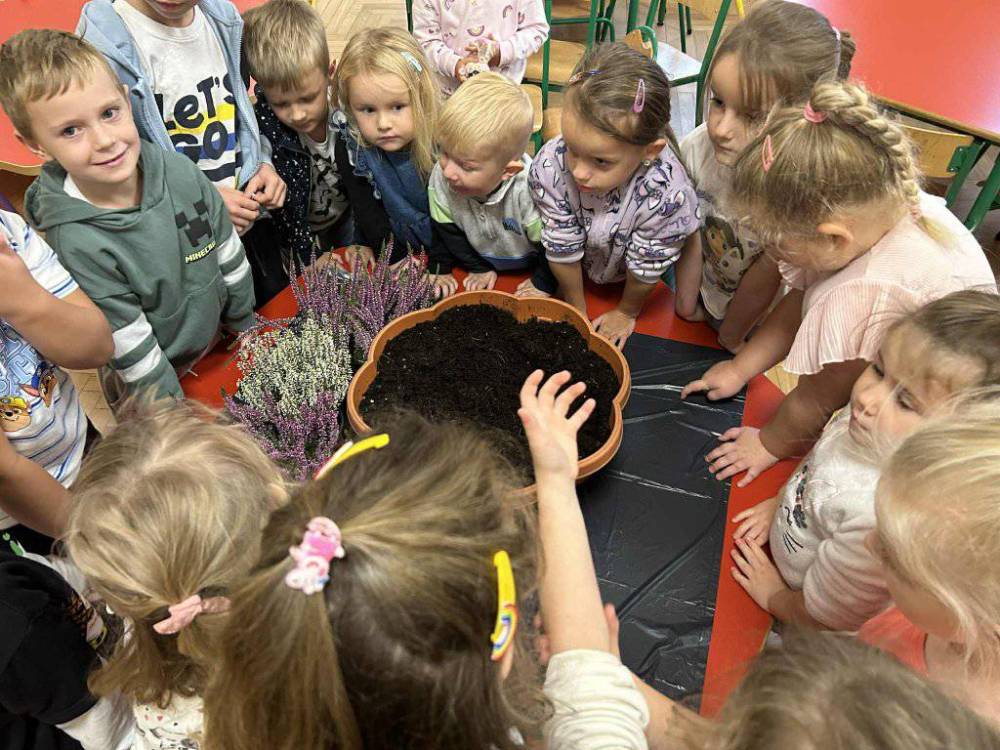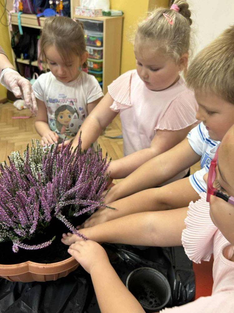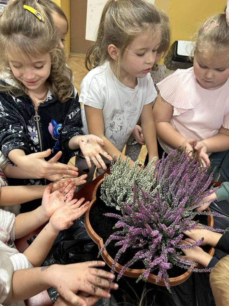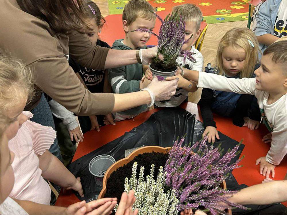 Ten dzień był również okazją do realizacji kolejnych zadań w ramach projektu „Z PRZYRODĄ ZA PAN BRAT - MAŁY BADACZ WIELKI ODKRYWCA “. Wspólnie dzieci założyły mini jesienny ogródek – posadziły wrzosy, które będą zdobić przedszkolny teren i przypominać o tym wyjątkowym dniu. Sadzenie roślin sprawiło dzieciom wiele radości i pozwoliło im poczuć się prawdziwymi przyjaciółmi natury.