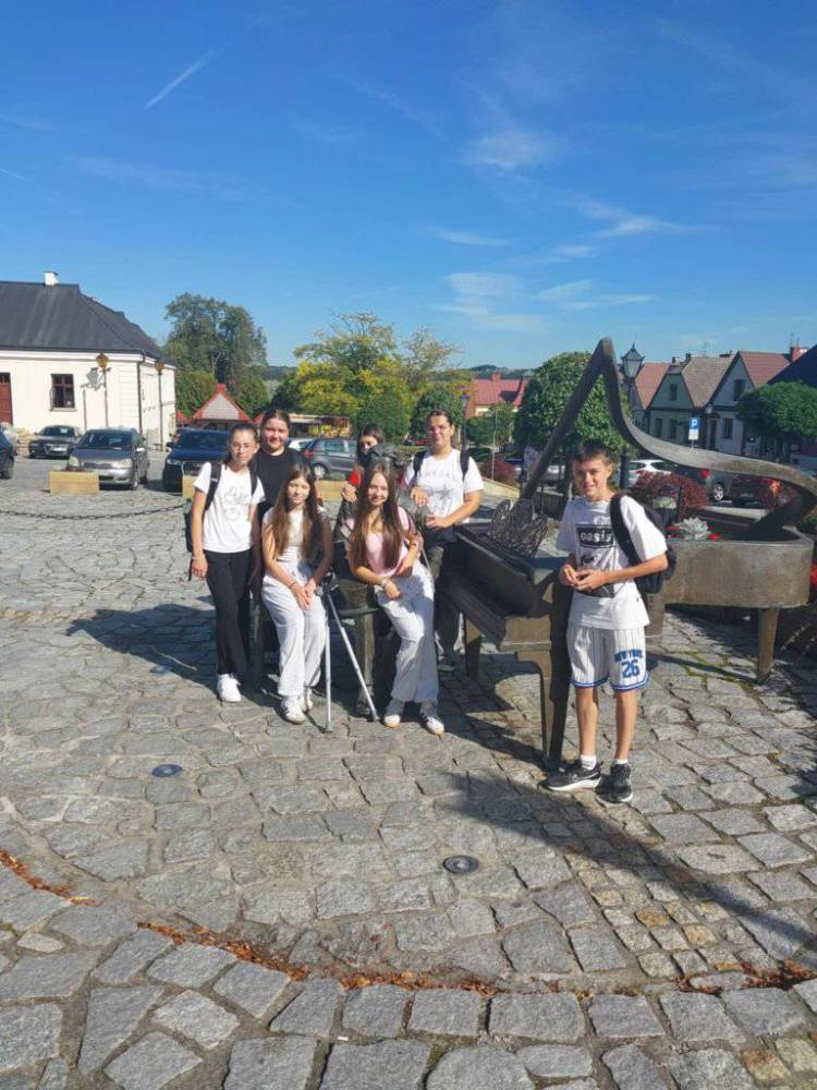 22 września uczniowie kl. VIII razem z wychowawczynią uczestniczyli w wycieczce do Ciężkowic. Poznawali obiekty użyteczności publicznej. Odwiedzili Komisariat Policji, po którym oprowadzał ich aspirant sztabowy Łukasz Kiełbasa, Urząd Gminy, tam przewodniczką była p. Aneta Zabawska, która wprowadziła dzieci w tajniki pracy kierownika USC. Uczniowie z przyjemnością przebywali w Sali Ślubów, słuchając Marsza Mendelssohna. Potem była biblioteka, w której można było podziwiać ekspozycję ,,Rysunki u Karoliny''. To prace mieszkanki Jastrzębiej Karoliny Kiełbasy. Na zakończenie wycieczki uczniowie się relaksowali na TKKF, swoje umiejętności zaprezentował przyszły Lewandowski, K. Deś.